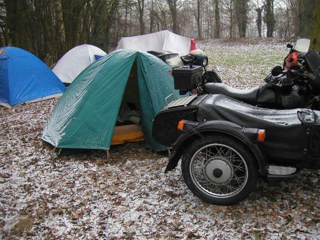 Bild: 2006 - Mit dem BMW-Gespann auf der Krystallrally in Norwegen, hier morgendliches Aufwärmen des Motoröls<