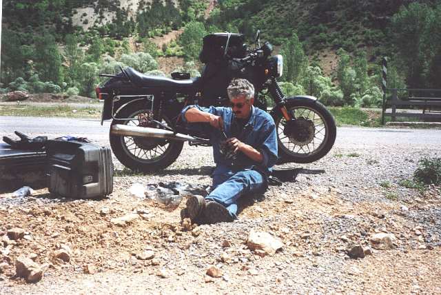 Zur Hochzeit in die Türkei zur ReiserouteEine Motorradreise vom 7. Mai bis 12. Juni 2000 durch Tschechien, Ungarn, Rumänien, Bulgarien, die Türkei und ItalienAm Montag war kurz nach dem Tanken in Gemüshane der schlechte Motorlauf immer noch da, ja sogar schlimmer geworden. Die Maschine stotterte stark und beschleunigte kaum noch.