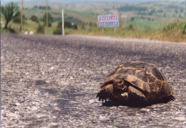 Kurz nach der Abfahrt habe ich nicht einer alten Frau, sondern einer Schildkröte über die Strasse geholfen. Tja und dann überquerte am späten Nachmittag auch noch eine kleine Schlange die Strasse. Über Kandira ging es nach Adapazari und dahinter nicht wie ursprünglich beabsichtigt entlang der Küste, sondern auf die B100. Der erste Teil vor Agva hatte mir bereits fahrtechnisch gereicht und dahinter war mit einer laut Karte "nicht staubfreien Straße" zu rechnen. Es konnte also nur noch beschwerlicher werden. Ich fuhr also ins Inland zurück. Kurz vor Düzce, ca. 10 km, mußte ich tanken.