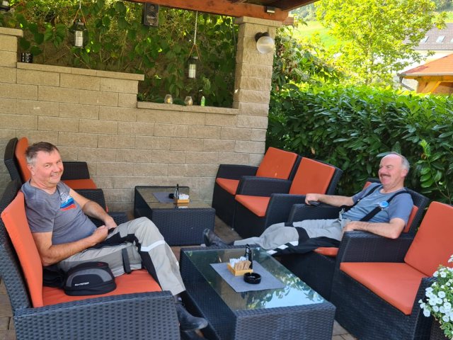 Bild: Es wird viel gelacht, viel erzählt, und die Vorfreude auf das, was vor uns liegt, wächst mit jeder Minute. Morgen geht es dann gemeinsam weiter: die letzten rund 160 Kilometer nach Genua. Dort startet gegen 16 Uhr unsere Fähre nach Tanger. Der Sonntag wird komplett auf See stattfinden, mit einem Zwischenstopp in Barcelona – ohne Aussteigen. Am Montagabend sollen wir gegen 20:30 Uhr in Tanger ankommen. Da es dann bereits spät ist, haben wir vorsorglich eine Übernachtung im Tanger Med Hotel gebucht. Während der Überfahrt werden wir nicht erreichbar sein – der nächste Blogeintrag folgt also vermutlich erst am Montagabend. Bis dahin: Wir freuen uns wie immer über Kommentare zu unserer Tour!