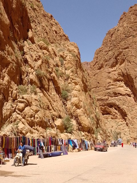 Bild: Nicht weit davon entfernt machten wir noch einen Abstecher zum sogenannten „E.T. Head“ – einer kuriosen Felsformation, die tatsächlich an den Kopf der Filmfigur aus dem Spielberg-Klassiker erinnert. Diese Gegend rund um Ouarzazate ist ohnehin stark von Filmgeschichte geprägt, was solche kleinen „Attraktionen“ fast schon logisch erscheinen lässt. Bild: Ob Wolfgang dort die Erleuchtung gefunden hat, bleibt allerdings sein Geheimnis. Sieh dir diese Rezension von E.T. head auf Maps an! In Ouarzazate selbst zeigte sich dann wieder das typische Bild einer touristisch geprägten Stadt: lebhaft, geschäftig, mit entsprechend angepassten Preisen.