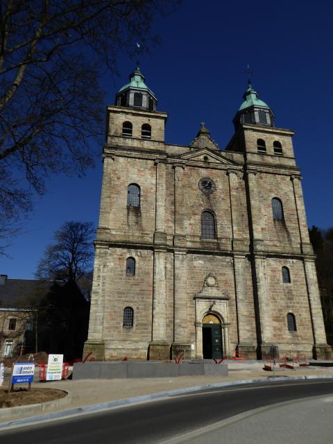 Bild: Kathedrale Saints-Pierre am Place du Châtelet in Malmedy Der Rückweg Eine Besonderheit der Region stellen die sogenannten Vennheckengehöfte dar. Es handelt sich um Häuser, an deren Wetterseite (Westen/Südwesten) hohe Buchenhecken gepflanzt wurden und werden, die entsprechend der Hausform zugeschnitten sind.
