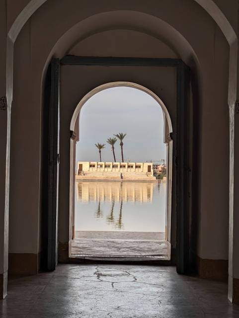 Der Jardin de la Ménara wurde Mitte des 12. Jahrhunderts unter der Herrschaft der Almohaden angelegt. Die Anlage wurde um ein zentrales Wasserbecken herum angelegt, das durch Aquädukte, Regen- oder Grundwasser gespeist wird und die umliegenden Bepflanzungen mit Wasser versorgt. Das schlammige Wasser wird von Dutzenden Karpfen bewohnt, die von den Besuchern mit frischem Brot begeistert gefüttert werden. Gegenüber des Palais befindet sich eine Tribüne, auf der man Platz nehmen und das einzigartige Panorama auf den Pavillon vor den Bergen des Hohen Atlas genießen kann. Hier noch andere Eindrücke vom Tag: