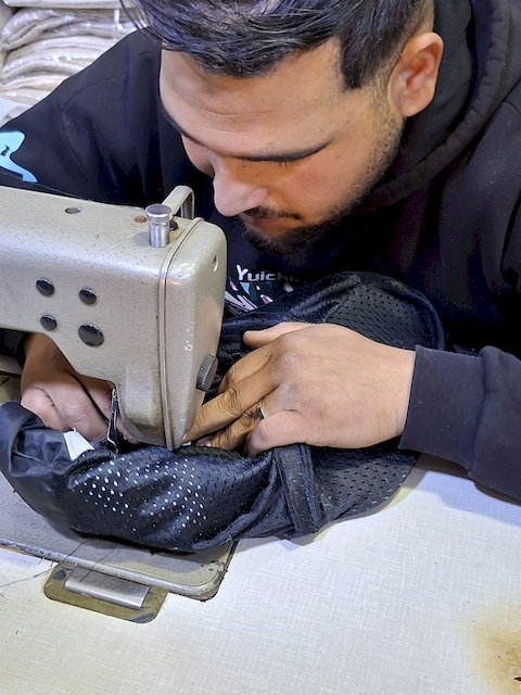 Direkt danach ging es noch in eine Polsterei, wo Wolfgangs aufge-rissenes Hosenbein kurzerhand mit einem Stück Leder geflickt wurde – inklusive netter Unterhaltung und viel Gelächter. Am Nachmittag nahmen wir die letzten Kilometer in Richtung Todra-Schlucht unter die Räder. Die Schlucht gehört zu den spektakulärsten Landschaften Marokkos: Steile, bis zu 300 Meter hohe Felswände ragen hier dicht aneinander, während sich unten ein schmaler Flusslauf und eine Straße hindurchschlängeln. Entsprechend groß war der Andrang – viele Touristen, Souvenirverkäufer und reger Verkehr bestimmten das Bild. Bild: Noch vor der Todra-Schlucht kamen wir an diesen Andenkenverkäufern vorbei, die hier ihre Ware anbieten. Wolfgang musste natürlich ein Turban-Tuch kaufen... Offenbar steht morgen eine Radveranstaltung an – überall sahen wir bereits Fahnen und Vorbereitungen, und uns wurde gesagt, dass die Schlucht zeitweise gesperrt sein soll.