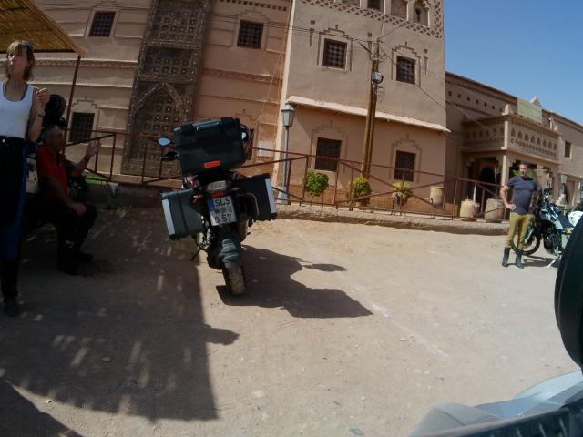 Bild: Direkt vor den Toren der Stadt fuhren wir am bunten Treiben eines Wochenmarktes vorbei. Zwischen staubigen Pisten, flatternden Planen und dicht gedrängten Ständen herrschte geschäftiges Leben – Obst, Gemüse, Gewürze, Kleidung, alles wurde gehandelt. Nach rund 27 Kilometern erreichten wir Achmas, wo wir nach links in Richtung Nordosten abbogen – Kurs auf Tinghir. Vorher legten wir aber noch eine kleine Kaffeepause direkt an der Straße ein. Während wir dort saßen, zog eine geführte spanische Motorradgruppe nach der anderen vorbei – geschniegelt, geschniegelt, geschniegelt, fast schon im Kontrast zu unserem eher staubigen Reisezustand.