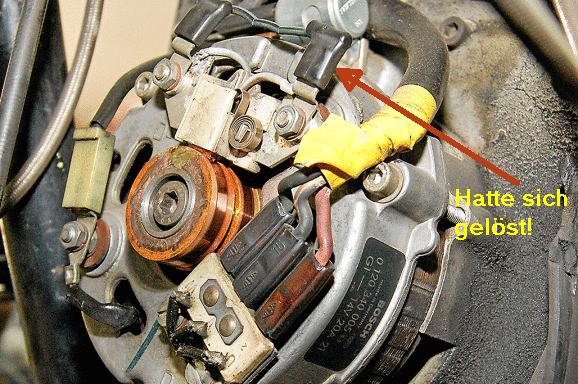 Erklärung: Der Regler erhält keinen vernünfitgen Spannungswert via D+/D- und regelt voll auf.   ![]()