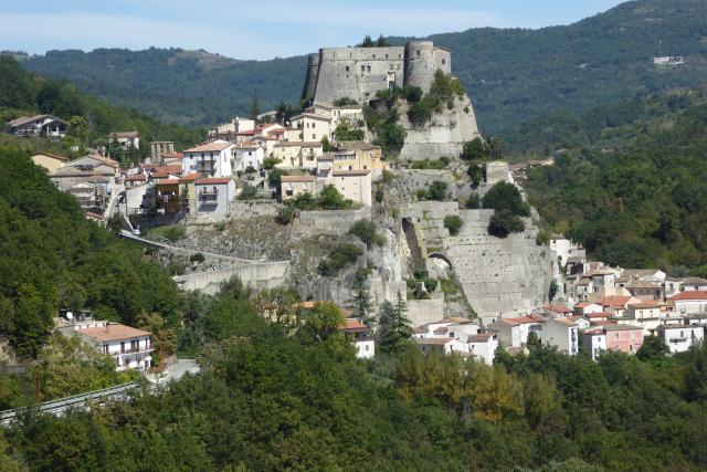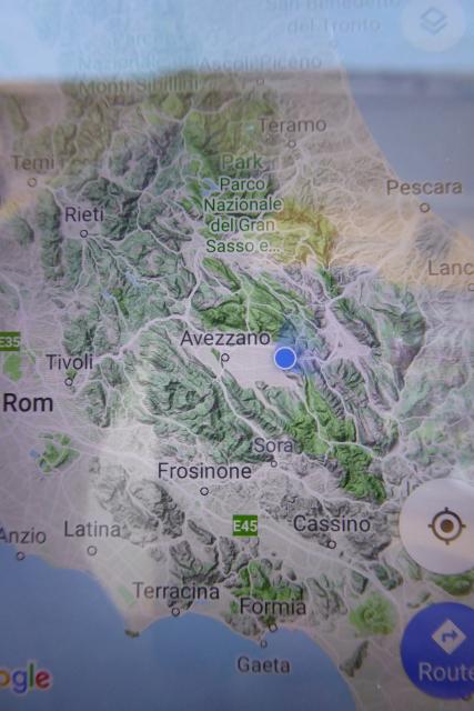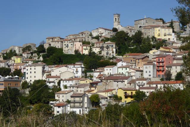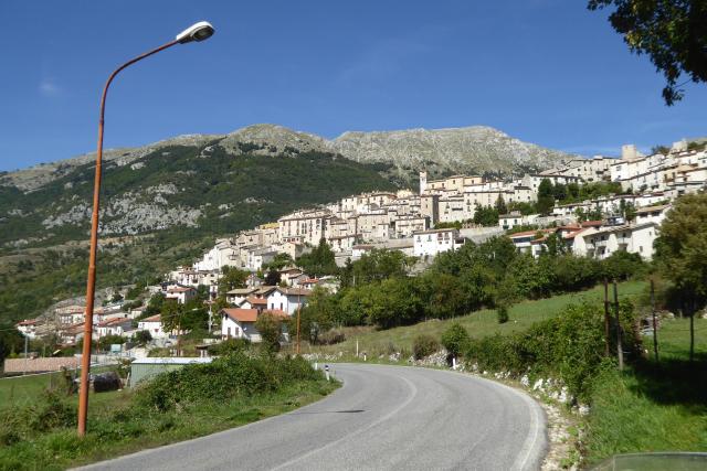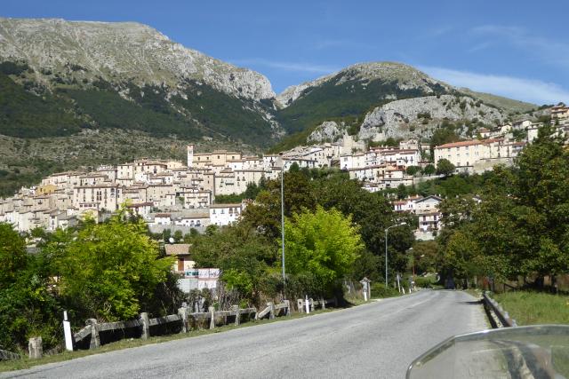 Karte: Übersicht unserer Reise Abruzzen-Nationalpark![]() Bild: Blick auf Barrea Lange noch begleiten uns an dieem recht frühen Morgen noch die vielen Windräder, die in dieser Gegend stehen. Für mich ein Zeichen der Hoffnung, dass die Verbrennung fossiler Energieträger bald der Geschichte angehört. Die Straßen sind oft klein und führen immer wieder in Schlangenlinien in unsere Hauptrichtung Nord-West. Es herrscht kaum Verkehr. Wir genießen die dünne Besiedlung der Gegend, die Sonne und die Temperatur, die auf diesen Höhen "nur" um die 25° C betragen. Hin und wieder gelangen wir zu einsam gelegenen kleineren Ortschaften, deren Kirchtürme meist auf dem höchsten Felsen stehen und deshalb schon von weitem zu sehen sind. Cercemaggiore klebt wie ein Schwalbennest an einem steilen Felsen und versehentlich nehme ich einen falschen Abzweig und wir gelangen so auf einer wirklich sehr steilen Zufahrt hinauf in den Ort. Jetzt heißt es, nur nicht nervös werden und immer weit vorausschauen, um das Gleichgewicht in den steilen und engen Kehren nicht zu verlieren! Ein idyllischer Ort, der trotz der vielen kleinen und bunten Häuschen sehr verschlafen wirkt. Kaum jemand ist auf der Straße. Wir finden wieder den Weg auf einem steilen Weg hinunter und hinaus. Einige Kilometer später hupt Reini plötzlich hinter mir und gibt mir Zeichen anzuhalten. "Hast du das gesehen? Das sind doch Hanf-Felder!" Wir wollen uns die Pflanzen mal etwas genauer anschauen, doch als wir darauf zugehen, nehmen wir bereits den unverkennbaren Duft des Hanföls wahr und wollen unseren Augen einfach nicht trauen. Zwei richtig große Felder mit dem Stoff, aus dem die Träume sind. Ich nehme mir einige Blüten als Andenken mit und wundere mich abends nicht, als wir unser Gepäck im Hotelzimmer ablegen, dass dieser eindeutige Geruch trotz darum befindlicher Plastiktüte sehr gut wahrnehmbar ist. Wenn das nur gut geht! Wahrscheinlich aber haben wir nur Pflanzen mit einem sehr geringen THC-Gehalt geerntet ;-) Nach weiteren Kilometern haben wir den Lago del Matese oberhalb von 800 m erreicht. Ein kurzer Stopp für einige Bilder von der Umgebung ist natürlich Pflicht. Auffallend ist wieder einmal, dass hier oben kaum Verkehr herrscht, die Luft angenehm kühl ist und die vielen Kurven allein uns gehören. Was für ein Luxus! In Letino legen wir eine erste Kaffeepause auf 973 m Höhe ein. Die junge Frau in der Bar fragt uns neugierig, woher wir kommen und auch die Rentner vor der Bar beäugen uns interessiert. Wir gönnen uns einige Schoko-Croissants zum Cappuccino. Wasser wird wie selbstverständlich immer dazu gereicht. Und das ist auch wichtig bei den spätsommerlichen Temperaturen - obwohl es heute lange nicht so heiß ist wie an den Vortagen. Die Höhe macht´s halt. Am frühen Nachmittag kommen wir bei der auf einem Berg bei Cerro al Volturno thronenden Festung vorbei, die sehr beeindruckend wirkt. Ein gemauertes Hinweisschild weist uns etwas später darauf hin, dass wir jetzt im Abruzzen-Nationalpark unterwegs sind. Wir gelangen zum Stausee vor dem hoch auf einem Fels klebenden Städtchen Barrea. Die Aussicht von hier oben auf die Wasserwelt und die sie umgebenden Berge ist wunderschön. Immer wieder treffen wir jetzt auf diese orangen Warnschilder, die davor warnen, zu schnell zu fahren, um die hier noch lebenden Bären zu schützen. Aber es gibt hier auch noch eine ganze Menge anderer Tiere. In unseren Augen unnötiger Tiere, wie z.B. Wespen. Heute ist Reini von einer in den Hals gestochen worden. Einige Tropfen meines mitgefühtten Heilswassers wirken jedoch Wunder und lindern den ersten Schmerz - obwohl Reini im Laufe des Abends doch sehr viel Mitleid beanspruchen wird ;-) Eine 2. Pause legen wir am Nachmittag in der Nähe von Avezzano ein, ein hübscher kleinerer Ort mit einigen Bars, darunter einer, wo wir im Schatten vor der Tür sitzen können. Wir stärken uns mit einem weiteren Croissant und einigen Cappuccini, Reini jammert ein bisschen wegen seinem wehen Hals, doch dann machen wir uns bald auch wieder auf zum Endspurt hin nach L'Aquila, wo wir heute übernachten wollen. Im Porta Rivera Hotel in L'Aquila am Bahnhof finden wir für 50 € für uns beide eine für italienische Verhätlnisse sehr gute und originielle Unterkunft. Besonders fallen uns die tollen Wandgemälde im Treppenhaus auf mit Motiven aus den ersten Jahren des Eisenbahnzeitalters. Sehr schön! Wir haben natürlich abends wieder Hunger, als wir losziehen zum Abendessen. Bereits gestern Abend haben wir ein opulentes 4-Gänge-Menue mit allem Drum und Dran gehabt, das wir beide wegen der Menge nicht aufessen konnten, doch als wir heute Abend in einer Tratoria in der Nähe Platz nahmen, waren wir ob unseres leeren Magens wieder gedankenlos und bestellten einfach, was der Wirt uns anbot. Und wieder gab es hier ein 4-Gänge-Menue mit Käse-/Schinkenplatte als Vorspeise, dazu Brot, später dann als 2. Gang eine Suppe, als 3. Gang gab es dann diese richtig dicken Spaghetti mit einer fetten Gemüse/Fleischsoße und dann dachten wir, dass es endlich zum Ende gekommen war. Aber mal wieder Fehlanzeige. Dann nämlich erst kam der Hauptgang mit Hühnchenschenkel, Kartoffelchips und Gemüse! Und dabei waren wir beide eigentlich auch schon bereits nach der Suppe proppenvoll! Nunja, dazu hatten wir dann auch noch den Liter Wein zu verputzen und zwei Liter Wasser, die hier einfach mit zur Mahlzeit gehören. Wir werden einfach nicht schlau! Sondern einfach nur schwerer... Morgen wollen wir fasten. Da gibts abends nur Bier! Die heutige Tagesfahrleistung: 326 kim ![]() Bild: Blick auf Cercemaggiore auf 930 m Cercemaggiore klebt wie ein Schwalbennest an einem steilen Felsen und versehentlich nehme ich einen falschen Abzweig und wir gelangen so auf einer wirklich sehr steilen Zufahrt hinauf in den Ort. Jetzt heißt es, nur nicht nervös werden und immer weit vorausschauen, um das Gleichgewicht in den steilen und engen Kehren nicht zu verlieren! Ein idyllischer Or