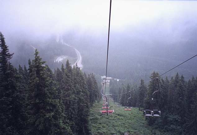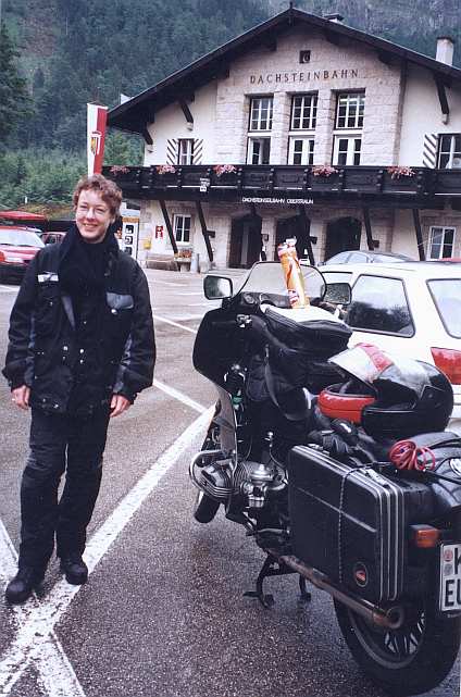 Alpen-Tour 98Auf Ölspuren durch die AlpenAm 4.7.98 starteten Andrea und ich zu einer 2wöchigen ca. 5.000 km langen Motorradtour durch die Alpen, die uns im Uhrzeigersinn über Bayern, Tschechien, Österreich, Slowenien, Italien und Schweiz bis nach Frankreich und zurück führte.Nach der Verabschiedung von unseren Gastgebern fuhren wir am nächsten Morgen auch ein kurzes Stück durch Tschechien. Eher zufällig hielten wir in Horni Plana an einem Restaurant, das direkt neben dem Geburtshaus von Adalbert Stifter liegt. Abends fanden wir in Österreich in Bad Leonfelden im "Gasthof Hofer" ein Quartier, dessen Wirt uns mit seiner Bill-Clinton-Frisur auffiel. Auf unserer Fahrt in den Süden gelangten wir am darauf folgenden Tag nach Linz, der Landeshauptstadt Oberösterreichs. Die Stadt zeigte sich uns mit viel Verkehr und schlechter Beschilderung und wir wollten uns deshalb nicht lange aufhalten. Bald hatten wir Lambach und Gmunden passiert. Entlang des Traunsees führte der Weg an Bad Ischl vorbei, wo wir eigentlich eine Pause hatten machen wollen. Doch flugs war die Stadt mehr oder weniger unbemerkt hinter uns - und vor mir die Standpauke Andreas. Bad Ischl ist das von bewaldeten Bergen umringte, malerisch gelegene Sole- und Schwefelbad an der Traun. Es gibt dort einiges Kulturelles und man hat von der Katrin-Alm (1542 m) aus eine Aussicht bis zum Dachsteingletscher im Süden. ![]() Wir durchfuhren Hallstatt, wo die Häuser den steilen, dunkelgrünen Berghang hinaufdrängen. Selbst für die Toten gibt es hier zu wenig Platz: Nach 10 Jahren ausgegraben werden hier die Schädel mit Namen versehen und zum Teil bemalt im Beinhaus aufbewahrt. Von Obertraun gelangten wir mit der Seilbahn auf die Mittelstation Schönbergalm, von wo aus man weiterfahren kann auf den 2109 m hohen Krippenstein. ![]() Für den heutigen Tag war dies jedoch bereits zu spät, so dass wir "nur" die Dachstein-Rieseneishöhle, eine kalte Märchenwelt mit Domen, Sälen, Gängen und Eisseen eine Stunde lang durchwandern konnten. Auf einem Vorsprung war auch ein Klavier aufgestellt, das offensichtlich für einige Veranstaltungen verwendet wird. Vor der Mittelstation der Dachsteinhöhle trafen wir zufällig vier andere Motorradfahrer, die aus Marienbaum und Kleve kamen. ![]() ![]() Als wir aus den Höhlen zurückkamen, regnete es und es war bereits später Nachmittag. Bei Regen erreichten wir an diesem Tag Gröbming, wo wir ein Hotel fanden. Die Nacht jedoch in diesem Hotel gestaltete sich sehr sehr laut wegen des Fußballspiels, das einheimische Fans auf dem Flur, in dem der Fernseher stand, lautstark mitverfolgten. ![]() ![]() ![]() ![]() ¹