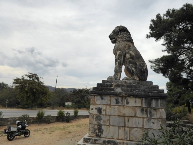 Herbst-Odyssee auf zwei RädernSchlechtwetterphase![]() Nun, die Entscheidung, wie ich heute weiterfahren will wurde mir vom Wetter abgenommen. Die ganze Nacht schon hatte es geregnet und dicke dunkle Wolken hingen über den Berggipfeln als ich mir morgens beim Frühstück die Kulisse anschaute. Dann lasse ich halt den Abstecher zum unteren Küstenabschnitt Albaniens aus. Vielleicht ist das Wetter ja auf der Rücktour aus der Türkei besser, so dass ich noch einmal hier in Albanien einen Versuch wagen kann, die ursprünglich geplante Tour durch die Berge umzusetzen. Man wird sehen. Ich bin also schnurstracks auf der 4 zur Grenze gefahren, habe noch einmal die letzten Leks in Benzin umgetauscht, und schon war ich auf der griechischen Seite unterwegs durch das nordgriechische Bergland. Grober Kurs Nord-Ost. Bis Neapoli bin ich auf kaum befahrenen fast perfekten Straßen entlang der Bergmassive gefahren und habe dabei fast 1.300 m Höhe erreicht. Schwerverkehr gab es hier so gut wie garnicht. Nur selten überholte mich mal ein Fahrzeug oder traf ich auf ein entgegenkommendes. Die breite Straße barg keine Fallen und nur einmal muste ich ein kurzes unbefestigtes Stück überbrücken. Eine wirklich empfehlenswerte Route.Auch wenn die Wolken sich heute einfach nicht verziehen wollten, hat die Tour Spaß gemacht. Ursprünglich wollte ich Thessaloniki weiter nördlich in höheren Regionen umfahren. Wegen der Wetterlage entschied ich mich jedoch für die Tour durch das flache Umland Thessalonikis und wählte hierfür ausnahmeweise einmal die Autobahn . So konnte ich heute auch gut Strecke machen. Einen ersten Stopp legte ich gegen Mittag an der Schlucht von Aoos ein, wo ein schöner Wasserfall hinunterstürzt und auch eine sehr alte Steinbrücke, ähnlich der Brücke von Mostar in BIH steht. Hier in Griechenland stehen die Zeiger der Uhr bereits eine Stunde weiter. Nach der Pause ging es dann eine lange Zeit immer entlang eines ausgetrockneten breiten Flussbetts des Aoos. Kaum vorstellbar, wie es hier im Frühjahr aussehen muss, wenn der Fluss wieder Wasser führt. Am späten Nachmittag kann ich endlich die Regenjacke wieder ausziehen. Hinter Asprovolta habe ich wieder die Mittelmeerküste erreicht und die Termperaturanzeige hat zwischendurch auch schon mal wieder 28° C angezeigt. Als ich so die Küstenstraße in Richtung Kavala entlang brause, sehe ich plötzlich auf der linken Seite auf einem Steinpodest einen riesigen Steinlöwen stehen. Das muss ich nochmal genauer erforschen, warum der hier steht. Natürlich habe ich auch einige Fotos davon gemacht. Noch vor Kavala werde ich dann beim 3. Versuch, eine Unterkunft zu finden, fündig. Hier in Griechenland zahlt man mittlwerweile mehr als in Italien für ein Bett mit Dach über dem Kopf. Und so bin ich dann heute in Nea Peramos, kurz vor Kavala gelandet. Touristisch gut erschlossen. Doch ich war nach gut 500 km heute ziemlich geschafft. Zum Glück scheint die Schlechtwetterphase auch schon wieder vorbei zu sein. Morgen Abend hoffe ich, endlich die Türkei erreicht zu haben. PS.: Es ist jetzt gerade mächtig am stürmen da draußen. Hoffentlich kriegt das Motorrad nichts ab. zur StreckeHier noch andere Eindrücke vom Tag: