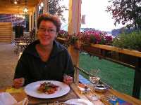 Bald darauf war wir schon in Riga, wo Andrea ein Bild von mir knipste. Wieviel Millonen Urlauber hatten dies wohl schon vor uns hier gemacht? Es kam mir so vor, als wenn sich die Autofahrer hier anders als in Litauen eher weniger an die vorgeschriebenen Geschwindigkeiten hielten. So haben wir heute Radarkontrollen auch nur in Litauen gesehen. In Riga fanden wir endlich mal wieder eine Super-Unterkunft, natürlich auch für das entsprechende Geld: 55 Lats, ca. 100 Euro pro Nacht. Im Restaurant des Hotels konnten wir das Abendessen aus einer Speisekarte, in der jede Beilage extra bebildert war, zusammenstellen. Da es nach dem Abendessen noch hell war, machten wir uns auf einen Spaziergang zur Brücke über die Daugava, auf deren anderer Seite sich die Stadt mit ihren vielen Türmen (8 haben wir gezählt) im Licht der Abendsonne zeigte. Bis viertel vor elf war es hier noch hell (Seit Litauen sind die Uhren übrigens um eine Stunde vorgestellt.) Montag, 07.07.03, heutige Strecke: Riga - Pärnue - Tallinn ... zur Übersicht