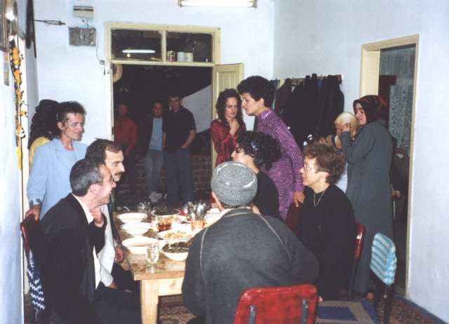 Für den Rest der Truppe, die noch zu Coskuns Haus mitgekommen waren, fing dann der zweite Höhepunkt der Hochzeit an. Nachdem die Braut über die Schwelle getragen war, konnte der Abend weitergehen. Zur Stärkung gab es jetzt erst ein leckeres Essen. Die Anlage aus dem Lager unterhalb des Hauses war schnell aufgebaut worden und bald von weitem hörbar. Bis fünf wurde noch getanzt. Da war es schon lange wieder hell. Dadurch, dass so lange gefeiert worden war, blieb es natürlich fast den ganzen Vormittag still im Haus und wir schliefen fast bis zum Mittag. Irgendwann klopfte Coskun an und lud zum Frühstück ein, zu dem auch bereits Aytens Vater erschienen war. Später sollte er die beiden auch noch nach altem Brauch islamisch trauen. Seite 12 / 18