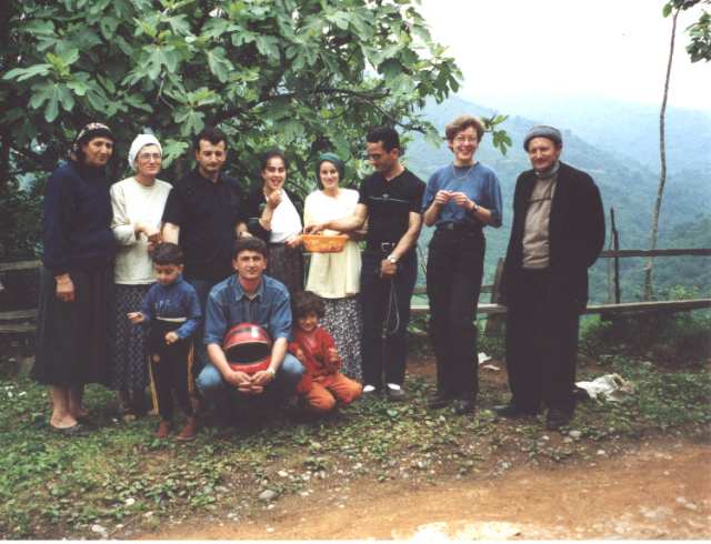 Nach den Abschiedsfotos gab es einen Kuss links, einen rechts bei jedem und ab ging es. Es war bereits Nachmittag! Auch Arslan an der Tankstelle wurde noch die Hand gedrückt mit dem Hinweis, dass er uns besuchen solle, wenn er in Deutschland Urlaub mache, wie er es vorhatte. Wir fuhren über Trabzon und wollten zum Sumela-Kloster. In Macka wollten wir gerne übernachten, um uns am nächsten Tag das Kloster anzusehen, doch es gibt hier nur ein einziges Hotel, mit 5 Sternen über dem Eingang und einem Portier vor der Tür. Zimmerpreis 100 $, solo! Doppelzimmer 120 $. Wir dankten und bald darauf hatte sich der Zimmerpreis auf 70 $ reduziert. Trotzdem war uns das die Sache nicht wert. Für Sumela war es jetzt zu spät und auch die tiefhängenden Wolken ließen erahnen, dass man nicht viel würde sehen können. Deshalb beschlossen wir, uns nicht weiter darum zu kümmern, sondern lieber ein akzeptables Hotel noch vor Einbruch der Dunkelheit zu finden. Die Fahrt ging über einen wolkenbedeckten Paß nach Torul. Hier war kein Hotel. Also weiter bis Gümüshane. Das beste Hotel war für uns und hatte wohl mal vor 20 Jahren seine 2 Sterne verdient. 15 Mio. waren durch angedeuteten Rückzug schnell auf 10 Mio. reduziert. Mehr wert war der Gegenwert des Zimmers auch nicht. In der Stadt fanden wir ein gutes Abendessen mit zwei Adana-Kebap, Salaten, Ayran und als Nachtisch Honiggebäck und Tee. Für alles zusammen zahlten wir etwa 10 DM. Seite 13 / 18