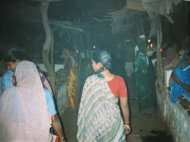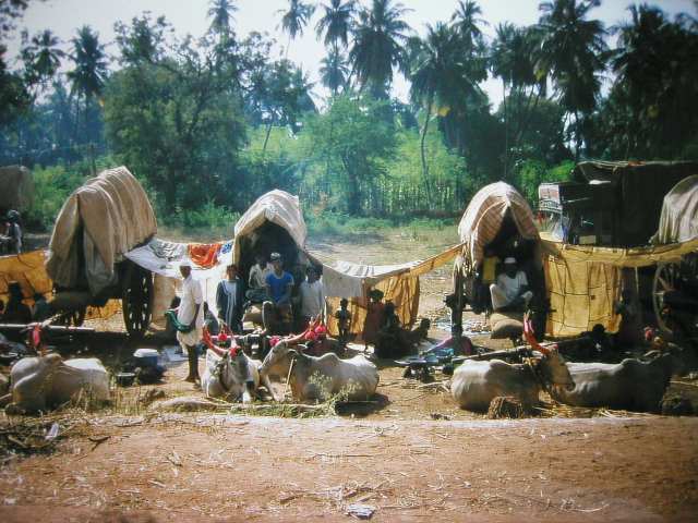Karte: unsere Reiseroute ![]() Kleine Gottheiten entlang des Wegs? ![]() Irgendein mehrtägiges kirchliches Fest wurde gefeiert. Von diesen Prozessionswagen sahen wir heute sehr viele. Zwischendurch hatten es sich auch 2 Beifahrer, die wir eigentlich nur nach dem Weg gefragt hatten, auf unseren Beifahrersitzen bzw. Rucksäcken bequem gemacht. In Badami endete die heutige Tour, weil wir beide ziemlich geschafft waren. Badami, von rotgoldenen Felsen eingeschlossen, ist für seine aus dem 6. und 7. Jh. stammenden hinduistischen, buddhistischen und jainischen Höhlentempel berühmt. Im Ort fanden wir ein gutes Hotel, wo wir zwei Nächte bleiben wollten. Insgesamt hatten wir 400 Rupies, ca. 20 DM, dafür zu zahlen. Zwar war die Dusche nur kalt, doch dafür war es sauber und es gab ein Moskitonetze über dem Bett. Sogar einen Wachposten hatten wir vor unserem Hotelzimmer. Beim Abendessen konnten wir die auf Zäunen und Dächern herumspringenden Affen beobachten. ![]() Danach liefen wir noch einmal ins Zentrum der Stadt, wo wir uns bald in einem regen nächtlichen Markttreiben wiederfanden. In der Dunkelheit hatte der Markt etwas Geheimnisvolles an sich durch die Fackeln, mit denen die Stände beleuchtet wurden. ![]() ![]() ![]() ![]()