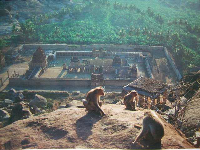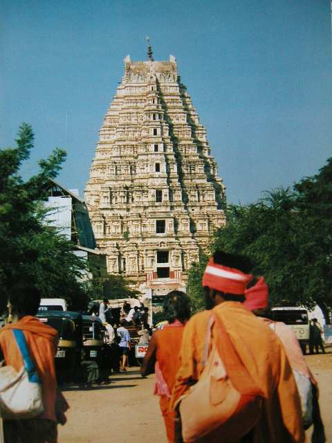 Karte: unsere Reiseroute Nach dem Frühstück bestaunten wir die vielen Hippies und Touristen in ihren bunten, löchrigen T-Shirts, die es hierher aus aller Herren Länder verschlagen hatte. Bis in den Nachmittag hinein sahen wir an verschiedenen Punkten der Stadt immer wieder dieselbe Gruppe indischer Badminton-Spieler, die ihre Koffer durch die Hitze mitschleppten.Das überwiegend flache Gebiet enthält an dieser Stelle ein ganzes Meer von Granitblöcken in allen Größen, ganze Hügel formend, auf denen wir unter der heißen Sonne herumkletterten. ![]() Der Kodandarama-Tempel ![]() One Rupee, Sir.............. ![]() Affentheater ![]() ![]() ![]() ![]()