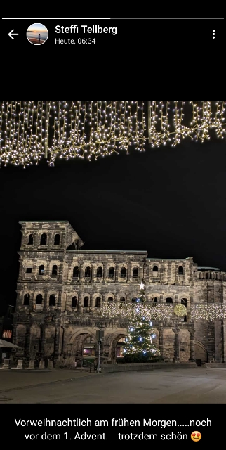 Ein Blick in mein Reise-TagebuchWie schnell verblassen doch im Alltag Ereignisse und Erinnerungen. Im digitalen Zeitalter, in dem vieles mit einem Klick erledigt ist, gerät einiges auch schnell wieder in Vergessenheit. Aus diesem Grund habe ich mir dieses kleine Reisetagebuch gebastelt, in dem ich die schönsten Erinnerungen an Reisen, manchmal aber auch nur an besondere Erlebnisse festhalten kann. Schnell ist das Smartphone gezückt und – zack! – ist der Moment auf dem Handy gespeichert. Als Whatsapp-Nachricht mit Gruß an die Liebsten wäre er jedoch alsbald wieder aus dem Sinn und in den Tiefen der Handy-Bildergalerie verschwunden. Hier kann ich die Highlights des Tages in Wort und Bild hinterlegen. Sicherlich könnte man so manches Bild noch nachbearbeiten und vielleicht auch noch umfangreicher beschreiben. Doch das kann ich später ja immer noch machen, wenn ich wieder vor dem Laptop sitze. Jetzt heißt es erst einmal, viel Spaß beim Durchblättern! Eintrag 243 vom 23.11.2023Heute Morgen in Trier vor der Porta Nigra
